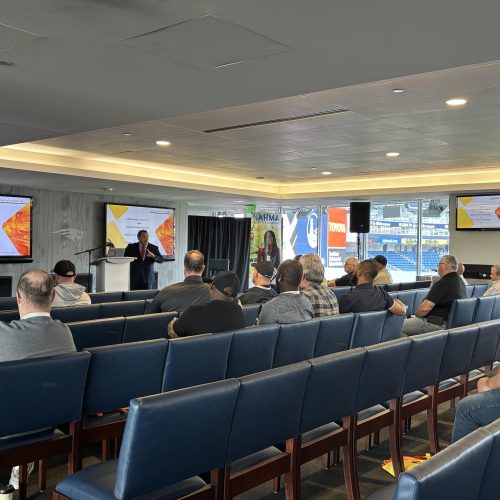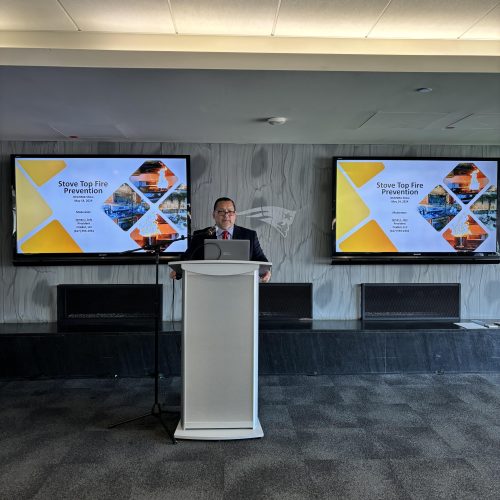 FireBot's James Joly gives a presentation entitled "Stove Top Fire Prevention" to attendees at the NEAHMA Maintenance Expo.